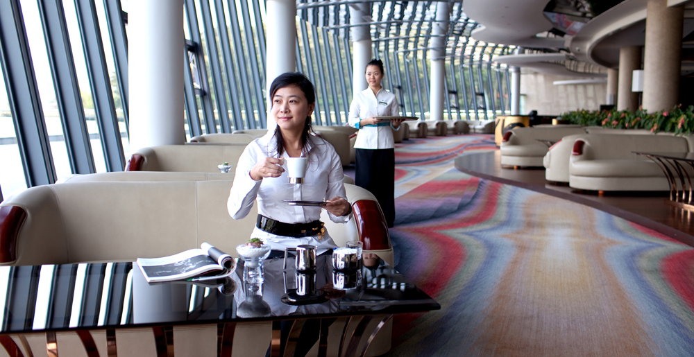 宽敞的空间感,衬托着艺术风味的酒店设计,为茶座营造了一种温馨的气氛,更有着一份宾至如归的氛围。全天候提供餐饮服务,是会客的理想地点。