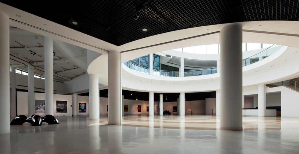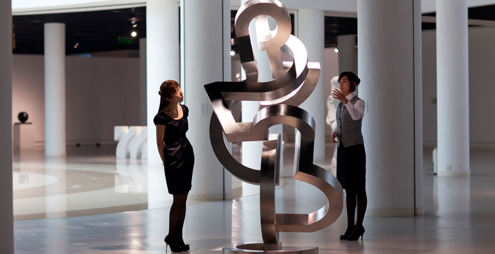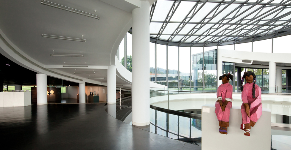 月湖美术馆为双螺旋地景工程,为不破坏公园整体视觉效果,大部分建筑体隐藏于地下,整栋建筑与自然山水和谐相融。其间定期举办的画展、艺术品展和大型车展,在秀丽的自然山水间营造出浓郁的艺术人文氛围。